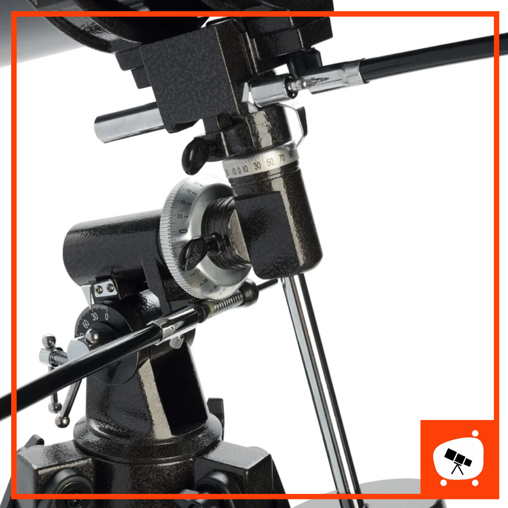 - Dudukan: Manual German Equatorial. Ini adalah dudukan yang dirancang untuk mengikuti gerakan bintang di langit malam. Ini dilakukan dengan memutar teleskop di sekitar satu sumbu, yang sejajar dengan sumbu rotasi Bumi.